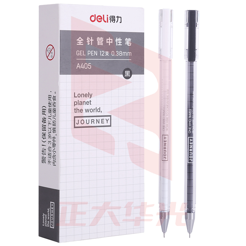 得力A405学生中性笔0.38mm全针管(黑)(12支/盒)XTGM0412155316434