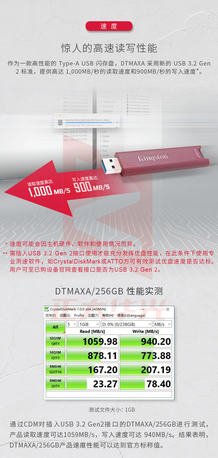金士顿256GB USB3.2 超极速固态U盘 DTMAXA 读速高达1000MB/s 写速900MB/s HEZB06181603138862