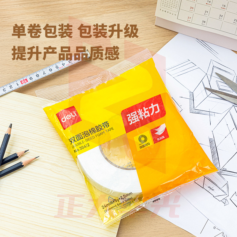 得力30412EVA泡棉双面胶带24mm*5y*2.5mm(白)(1卷/袋)XTGM03010848238253