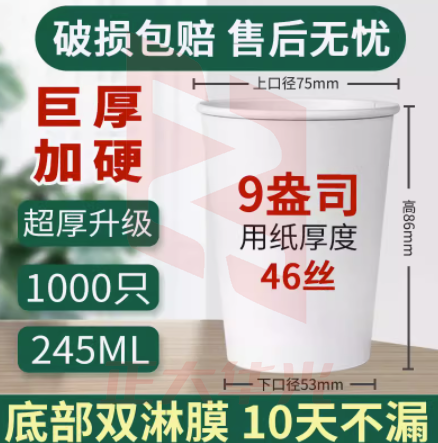 纸杯定制印LOGO办公商用杯定做(1000个起订)9盎司超厚升级46丝1000个订制 巨厚加硬 JFIK07261431119252