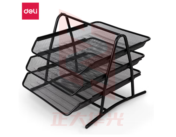 得力 三层金属文件盘 桌面收纳文件架/资料架/文件篮 托盘黑色9181 NIAB07311338337714